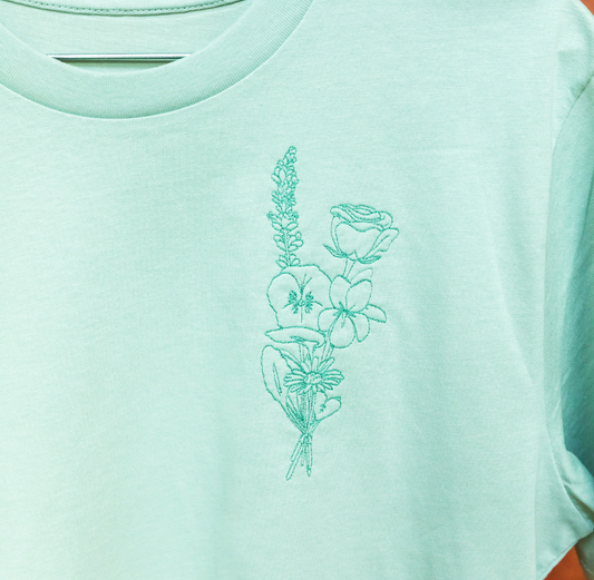 Adult T Shirt: Ophelia's Flowers Aloe Green