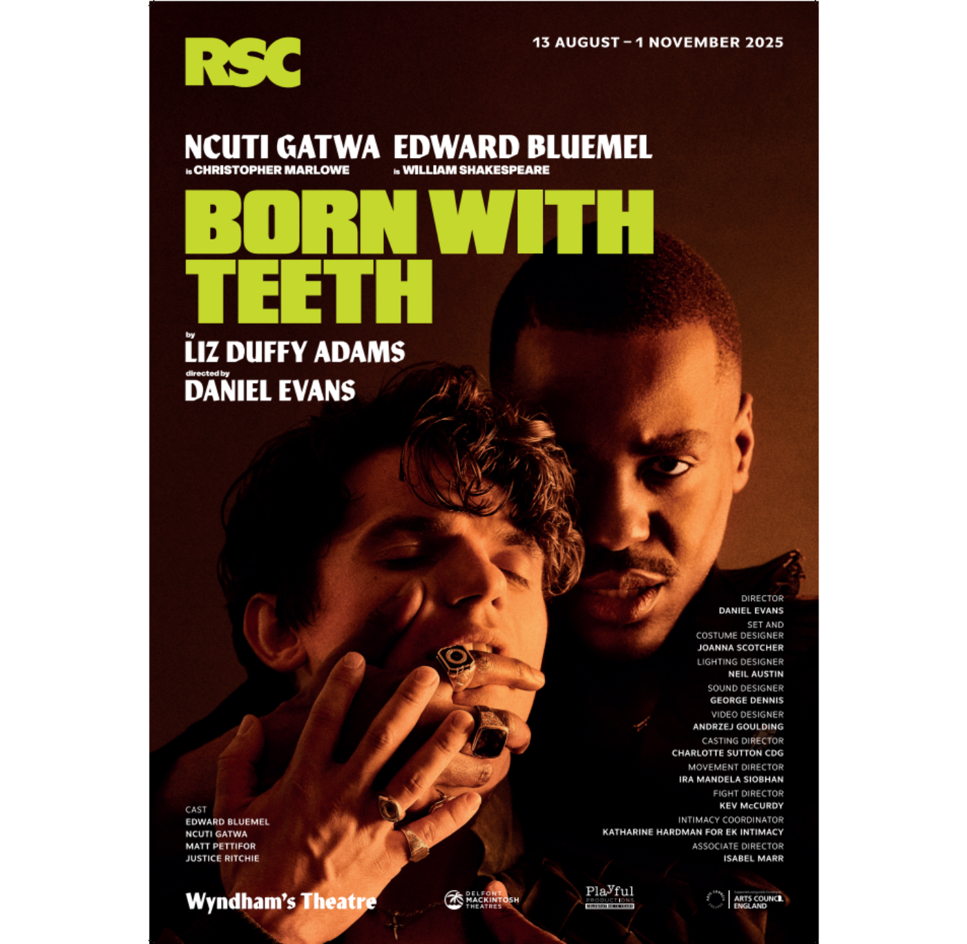 RSC Co-Artistic Director and two-time Olivier Award winner Daniel Evans directs Ncuti Gatwa (Doctor Who, Sex Education) as Kit Marlowe and Edward Bluemel (Killing Eve, My Lady Jane) as Will Shakespeare in this explosively entertaining duel of wits, words, and powerplay.