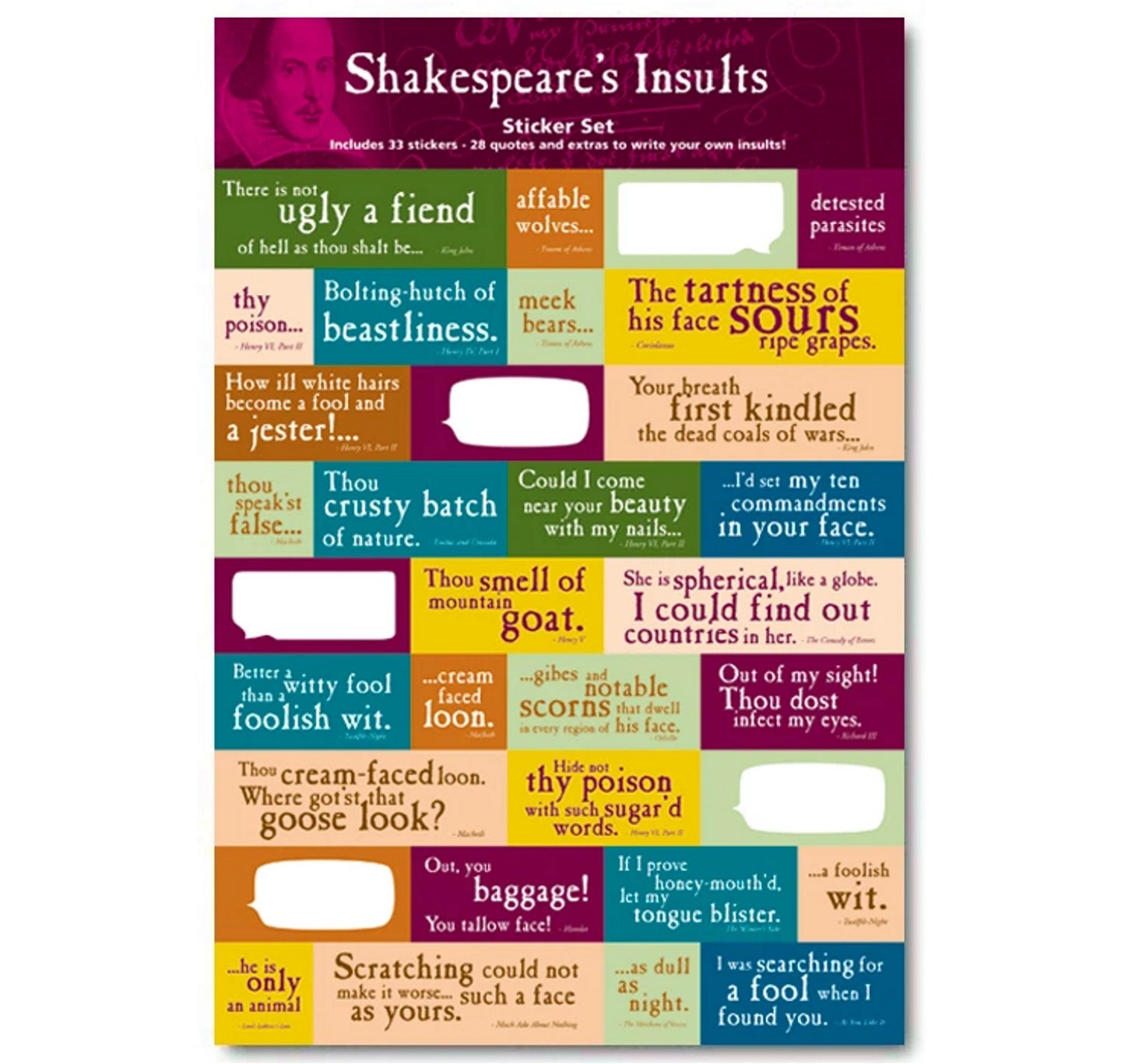 A sheet of stickers featuring Shakespeare's most well know insult quotes.